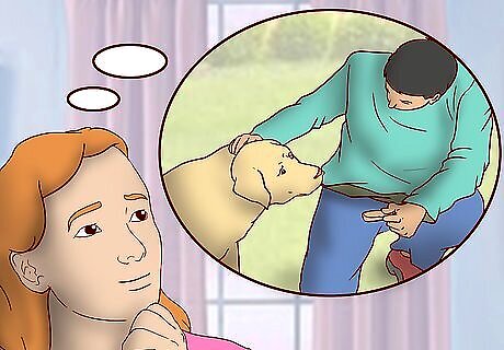 Help your dog overcome any social fears. Some dogs end up scared of some people, like men or people wearing hats. If this is the case for your dog, you need to help socialize them with whatever scares them so they can get over the fear. However, you may need to tell people that your dog is fearful and to take caution around them. For example, if your dog is afraid of men, invite men over to interact with your dog. Give them treats to give your dog, and encourage them to give lots of praise and positive reinforcement. You may have to tell children to be quiet or gentle with your dog because they get upset around loud screaming or when handled too harshly. Do this slowly. Start with one man, then a few, then more to help your dog get over their fear.
