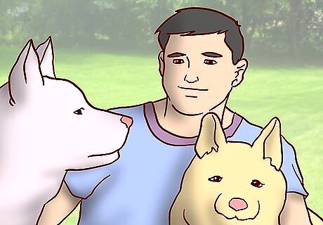 Invite people over. Another way to socialize your older dog is to let them interact with people who come to your home. By letting your dog be around people, they can stay social or increase their social skills as they age. You can ask visitors to give your dog a treat when they come in to help them react positively.