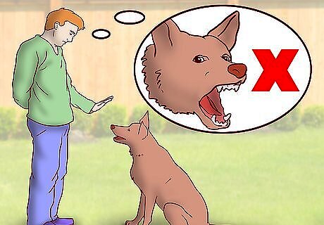 Use positive reinforcement. If your dog growls at people or other dogs, try using positive reinforcement to adjust their behavior. Instead of yelling at your dog or punishing them for barking, tell them in a firm voice, "No." If you have to, move them away from the source. When the dog stops growling, provide treats and praise for them to associate with the new dog. You can also associate new dogs and people with treats and positive reinforcement. For example, if a dog starts to approach you and your dog, give your dog a treat before they start growling. This helps them start to associate new people and dogs in a positive way. When your dog acts in the way you want them to with another dog, give them a treat. Pet or praise your dog when another dog walks by. Use a happy tone of voice when talking to the dog.