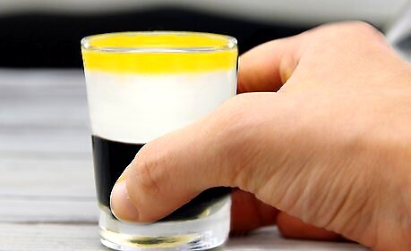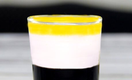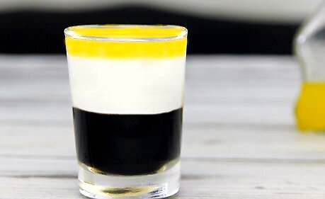 Finish off with the Grand Mariner, using the same technique. Still keeping the spoon tip just above the Bailey's, slowly pour the Grand Mariner into the glass. Again, remember to pour towards the handle/your hand. When you get to the rim, move the spoon away from the glass and finish pouring. Don't worry if the Grand Mariner spills over. Simply wipe it up with a towel.