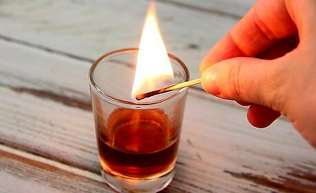 Add a dash of Bacardi 151 rum and set it on fire to make a Flaming B-52. Prepare a basic B-52 layered shot, but leave a sliver of space at top. Finish it off with a dash of Bacardi 151. Carefully light the shot on fire with a match. Let the shot burn for a few seconds before blowing it out and drinking it.