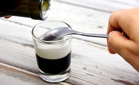 Slowly pour the Bailey's over the dome of the spoon, towards your hand. As you fill the glass, raise the spoon upwards, always keeping the tip just above the liquid. Make sure that you are pouring towards the handle/your hand. If the two liquids start to mix, finish the layer and wait a few seconds. They will eventually settle and separate.