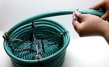 Wind the last zip tie around the base of the hose. Start where you want the handle to begin and twist the hose around so it is facing the exact other side of the basket.