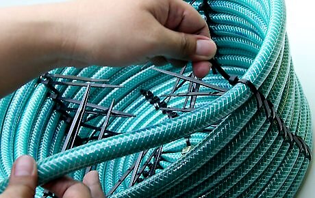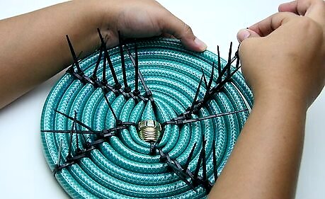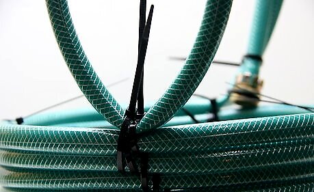 Choose a color according to your reason and use of your basket. While you could just create the basket from an old garden hose you have laying around, it's probably best to spring for a new hose in a color that matches your outdoor décor. If you hit the lawn and garden store, you will most likely have several colors to accommodate your needs––they may even have some fancy patterns! Consider matching the zip tie color to the hose color or purchase zip ties in a complementary, contrasting color.Make a Basket from a Garden Hose Step 3Bullet1.jpg