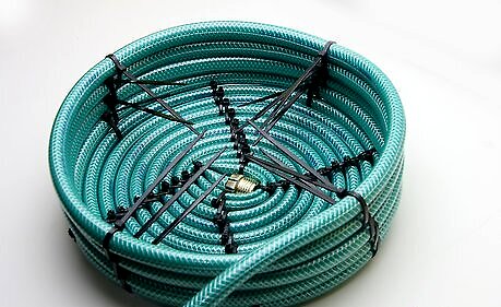 Continue to wind the hose around itself to create the basket base. Add zip ties around the perimeter of each circle and tie on tightly.