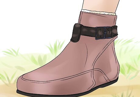 Put on your socks and shoes. Pull the elastic at the bottom of your pants over your socks. Put on your shoes, and tuck the bottom of your pants into your shoes before tying them. You are now ready to handle bees.