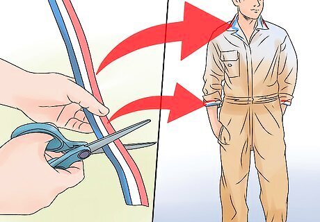 Cut velcro to line the shirt opening. Measure the length of the shirt opening. Place the measuring tape along the edge of the shirt's opening. Measure the length of the opening from the tip of the shirttail to the bottom of the collar. Write down the measurement, then use it to cut two pieces of velcro that will stretch the entire length of the shirt opening on both sides.