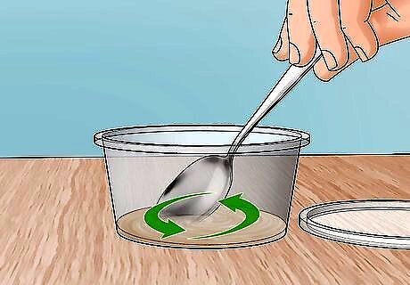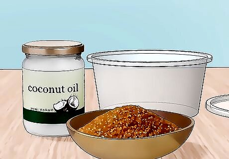 Add coconut oil. Add one tablespoon of coconut oil to the same sealable container. If the coconut oil is solid, which often happens in the winter months as it get cooler, place the coconut oil jar into a bowl filled with “warm” water until it becomes a more manageable consistency.