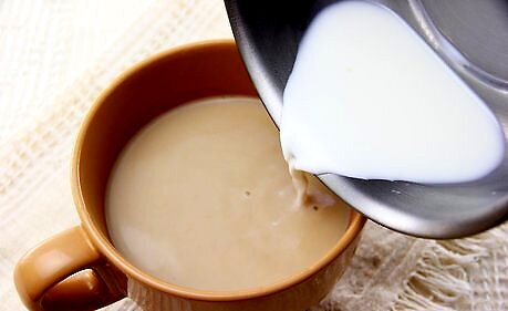 Pour the brewed coffee and heated milk into your mug. When both parts of the drink are prepared, you simply pour them into your drinking cup in equal parts. You can vary the ratios to your taste, of course. Traditionally, the coffee and milk are poured into the cup side by side (holding the coffee pot in 1 hand and the saucepan in the other). This is done to ensure adequate mixing, a proper ratio, and for dramatic flair.