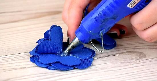 Glue the rose. Take a low-temp glue gun and apply a little glue on the bottom of the rose. You want to glue together all the ends of the petals, where they all meet in the center.