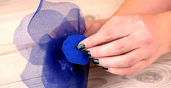 Pinch and glue the petals. For each petal, pinch the base and put a dot glue to secure it like that.