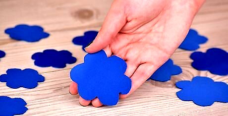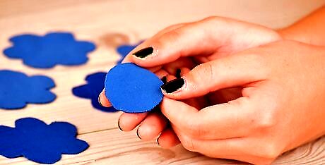 Glue the rest of the flower shapes. For each of the other flower shapes, place another dot of hot glue in the center of the flower, fold the flower shape in half, and place it on the hot glue. Rotate the base slightly in between gluing each flower shape so that the shapes aren't aligned. Stop before you use the last two of your flower shapes.
