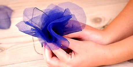 Fluff the petals so that it looks more like a flower. If your fabric rose is lying a little flat, you can use your fingers to ruffle and wrinkle the petals. That way it looks more flower-like.