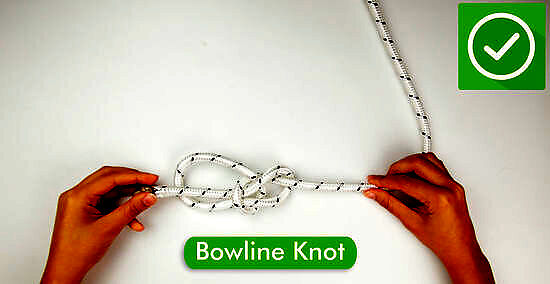 Bowline knot (bowline hitch) Tying a bowline knot creates a fixed loop at the end of a rope or string. This knot is useful if you need to moor a boat, haul something up, or tie two pieces of rope together. First, lay the rope down on a flat surface. Hold the right end of the rope in your hand and create a loop a little less than halfway down the string by placing the right end over the center. Pull the right end of the rope through the loop. The right-hand end should come towards you as it goes through the loop. Don’t pull the knot taut yet. Bring the left end of the rope up and tuck the right end behind it. This will create a smaller top loop above the large loop you already made. Pull the right end back through the top loop. Thread it through so that the rope is going away from you instead of towards you. Pull the two ends of the rope away from each other to tighten the knot. This leaves you with a knot and a large loop at the end.