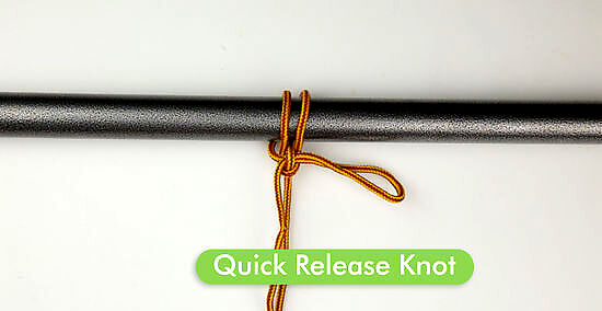 Quick-release knot Quick-release knots (also called a Highwayman’s hitch) are used to tie a horse up in such a way that the knot can be easily undone by pulling the loose end of the rope. If you don’t have a horse, tying a quick-release knot can still be useful if you have something you need to secure temporarily and release quickly later on. Hold your rope in one hand. The part of the rope connected to your horse (or whatever it is you’re fastening) is the “lead” rope. The part of the rope that hangs loose is the “tail.” Fold the tail in half to create a loop. Wrap the loop under the fence, beam, or rail you’re anchoring the other object to, and drape it over so that it’s hanging down. The tail will be on one side of the loop, and the lead rope will be on the other side. Cross the tail over the loop and under the lead rope. Fold the tail in half and push it down through the original loop. Pull the lead rope to securely tighten the knot.