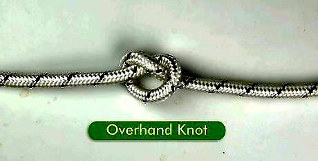 Overhand knot Most people learn how to tie an overhand knot before anything else. It’s the easiest and simplest knot to learn, but it’s also very sturdy and strong. First, make a loop by crossing one end of the string over the other. Insert one end of the string into the loop. Pull both ends in opposite directions to tighten the knot. Meet the wikiHow Experts Britt Edelen is an outdoor educator and Boy Scout who uses his survival skills to educate youth as a camp counselor and mentor. Jordan Frazier is a knot-tying expert with over 8 years of knot-tying experience. Teddy Bayakhmetov is a professional climber who specializes in rope practice and rigging.