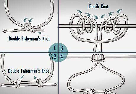 Prusik knot Make a prusik knot when you need a “third hand” for rappelling or when you need to tie a loop around a rope so that a rope can be ascended. This is a classic ascending knot that’s often used for self-rescue. For this friction hitch, you will use a thinner piece of rope (rope A) around a thicker piece of rope (rope B). Start by tying a double fisherman’s knot in rope A. Hold one end of the rope (end 1) in your right hand and the other end (end 2) in your left hand. Cross end 1 over end 2, then wrap end 1 around both itself and end 2 twice. Feed end 1 through the two loops you just made and pull it through to tighten the knot. Make another double fisherman’s knot by wrapping end 2 around itself and the rest of the rope twice. Feed end 2 through the two loops and pull it through to finish your second knot. Make a “bight” in rope A by folding the rope in half so that it makes a U shape. Make the bight on the opposite side of the rope from where the double fisherman’s knots are. Wrap the bight around rope B. Pull the end of rope A that has the double fisherman’s knot through the loop of the bight. Thread the rope through the bight front to back. Lift up the bight and wrap it around rope B again. Repeat threading rope A through the bight and wrapping the bight around rope B two more times to make your friction hitch strong and secure. EXPERT TIP Teddy Bayakhmetov Teddy Bayakhmetov Professional Climber Teddy Bayakhmetov is a professional climber and owner of Ninja Tide based in Stockholm, Sweden. Teddy specializes in rope practice, rigging, and rescue services. He also does industrial climbing work all over Europe and Scandinavia. Teddy has become widely known as a hero for his rescue work and has put his skills to use by saving over 240 cats, 4 birds, and 3 people from high places. Teddy Bayakhmetov Teddy Bayakhmetov Professional Climber The key to tying strong knots is to practice regularly. The more you practice tying knots, the easier they’ll be to make, and the stronger they’ll be in return.