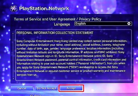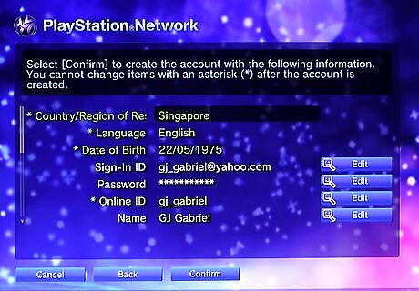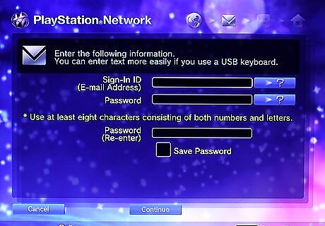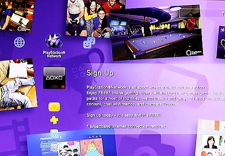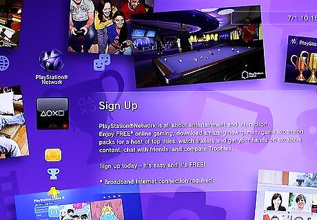 Go to the "PlayStation Network" icon on the PS3's main menu and select "Sign up for PlayStation Network." Make sure you aren't signed in to another PlayStation Network (PSN) account or the "Sign up" option will be replaced by a "Sign In" option.