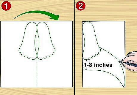 Fold the paper in half, then draw half of a fin shape. Fold the paper in half widthwise, so that you only see one of the traced slippers. Starting at the bottom edge of the slipper, trace a half-fin shape. The bottom edge of the fin should be 1 to 3 inches (2.54 to 7.62 centimeters) from the top of the slipper.