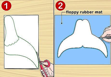 Cut the tracing out, then transfer it to a thin sheet of rubber. Cut the tracing out first, then unfold it. Place the template onto the rubber mat, then trace around it using a pen. Use a white, silver, or cold pen for dark rubber, and a black pen for light rubber. Choose a thin piece of floppy rubber. A thin, flexible, rubber mat would work especially well for this.