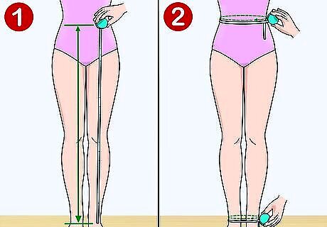 Take your measurements. Measure from your waist down to your ankles. Next, measure around your waist and both of your ankles. Record each of your measurements. If this is for an adult woman, measure the hips too. Note the distance between the belly button and the hips as well.
