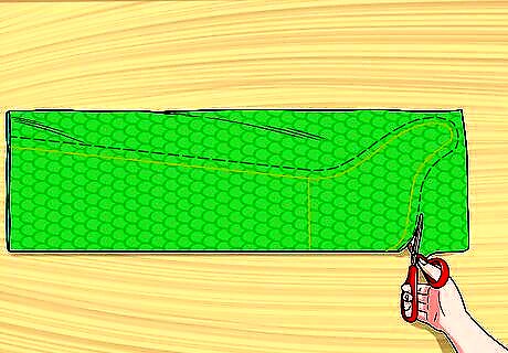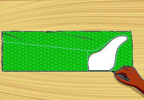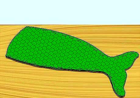 Add the fin template and trace around it. Fold the fin template in half, then place it onto the fabric. Make sure that the folded edges match up, and that the top edge of the template touches the bottom edge of the tail. Trace around the template, then pull it away. For a fancier tail, add a ragged, fringy edge to the bottom of the fin.