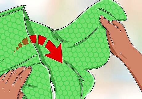 Cut your fabric, including seam allowances. You will need to add 1 inch (2.54 centimeters) to all edges, including the top. When you are done, cut a second piece of fabric just like the first one. Use the already-cut piece as a guide. If you added a ragged fringe to the bottom edge of your tail, you only need to add seam allowances to the outer edges of the fringe.