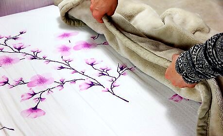 Smooth out the bed clothes neatly. While your pet will possibly wrinkle it, do your best to start out as smooth as possible; you can always pull at the edges again while the pet is seated or lying in place.