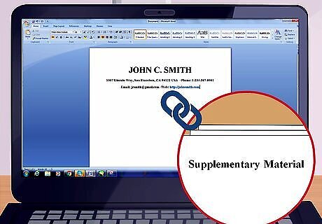 Link your resume to appropriate supplementary material. In your resume, you can reference previous projects or papers you have done. Make sure that the information in your resume is consistent with the actual project or paper. Especially for artistic disciplines, a portfolio is often included with a resume.