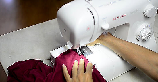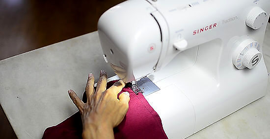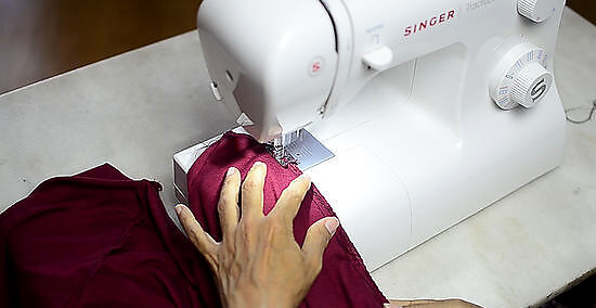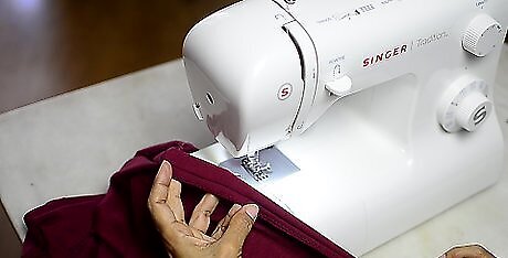Hem the sleeves, neckline, and bottom of the shirt. If you are using a pattern, follow your pattern’s instructions for hemming the sleeves, neckline, and bottom of the shirt. For a simple hem, fold the edges of the fabric over by 0.5 in (1.3 cm) and sew a straight or zigzag stitch about 0.25 in (0.64 cm) from the folded edge to secure the hem. Some types of material will not require a hem, such as jersey. The fabric will curl up slightly at the edges if left unhemmed. You can also do a cut neckline, which is when you cut around the edges as desired and then leave the neckline unhemmed. To sew a basic neckline, you will need to cut out a 1 to 2 in (2.5 to 5.1 cm) wide piece of fabric in the shape of your neckline. Then, pin the fabric to the neckline with the right sides of the fabric facing the right side of the shirt. Sew a straight stitch 0.5 in (1.3 cm) from the raw edges of the neckline. Then, turn the fabric into the shirt and sew another seam 0.5 in (1.3 cm) from the folded edge. This will secure your neckline. You may need to sew the front of the neckline separate from the back.