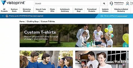 Choose a shirt making company that meets your needs. There are many manufacturers who produce custom shirts. Check out some different manufacturers’ websites to see what they offer and choose one that meets your design needs and budget. Make sure that they have all of the options you are looking for as well, such as shirt color, style, and size. Try Vistaprint for a company that allows you to upload your own image. Go with Custom Ink to choose a brand name shirt to customize. Look into Rush Order Tees to design a company logo.