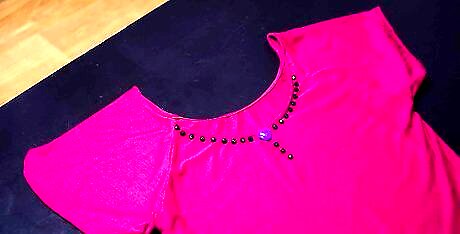 Sew fabric appliques onto a shirt. Thread a needle and pull the strands until they are even. Then, tie a knot in the end of the thread before you begin. Insert the threaded needle into the applique and through the inside of the shirt. Go in and out of the applique and shirt fabric several times to secure it. Then, tie the thread on the back side of the shirt to secure the applique. You can buy or make fabric appliques, such as bows, flowers, and ruffles, and sew them onto a shirt wherever you like. Choose the style and colors of your choice and sew the items onto the shirt with a needle and thread. Use the delicate cycle to wash a shirt with appliques sewn onto it and hang it to dry.