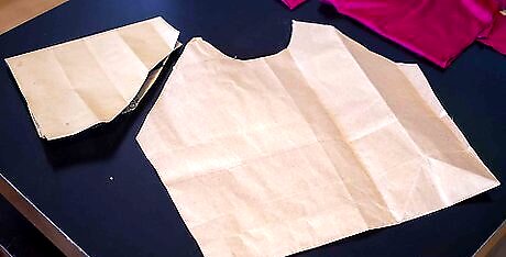 Cut along the edges of the pattern pieces. Use a sharp pair of fabric scissors to cut through both layers of fabric. Follow the outline of the pattern pieces. Do not cut through the pattern or away from the edges. Make the cuts right along the edges to get the best results. Do your best to make clean cuts through the fabric without any jagged edges. Remember that the neckline on the front and back of the pattern will be slightly different. The neckline will be higher in back and lower in the front. You will need to cut out 2 pieces for the front and back of the shirt, and 2 pieces for each of the sleeves. Check to see if any additional pieces are required for your pattern, such as material for the neckline or other types of details.