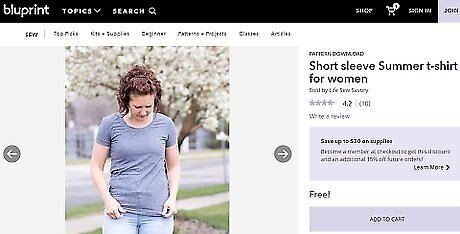 Purchase or print a T-shirt pattern. You can find lots of easy to follow T-shirt patterns in a craft supply store. There are also many free T-shirt patterns available online that you can download and print. Choose a pattern that will allow you to sew the type of shirt you want. You can make a T-shirt with any type of neckline you want. For example, you could opt for a scoop neck, v-neck, or round collar. The sleeves can be as long or as short as you want them to be, such as cap-sleeves, elbow-length sleeves, ¾ length sleeves, or wrist-length sleeves. Choose the level of fitting you want for your shirt, such as loose-fitting, slightly fitted, or tight-fitting. You can also find shirt patterns for unisex, men's, and women's styles.