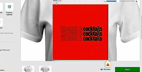 Select text to put on the shirt. If you want your shirt to say something specific, then type it into the provided field. Make sure to check the text for errors, such as misspellings, incorrect grammar, and punctuation issues, before you submit it. Try putting your company’s name and motto on a shirt to advertise your business. Put a special message on a shirt for an event or special occasion. Add your name or initials to a shirt to personalize it for your own use.