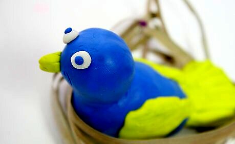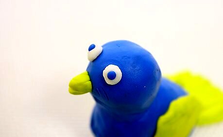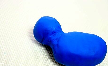 Get another piece of clay the same color or a different color. It should be a bit smaller than the other piece. Roll it into a slightly thick cylinder. At the top, bend it forward and make it circle shaped. This will be the neck and head. Stick it to the body.