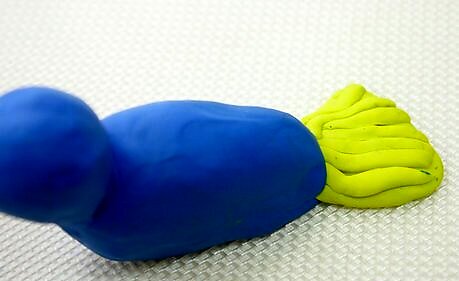 Start off with any color piece of clay. Roll it into a ball, then shape it into an oval shape.