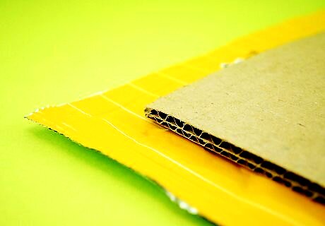 Put the cardboard on top of the reflective material. Center it so that what is taped isn't too bulky on one side or the other. Tape the long sides down.