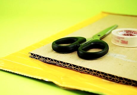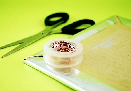 Gather together the things you'll need. You'll need a piece of cardboard of a decent size, reflective material and tape. There's no need to go looking for expensive reflective material – as you can see from the photos in this tutorial, a cleaned-up potato chip packet was recycled as reflective material.