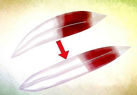 Straighten the feathers (if necessary). If the feathers are bent or extremely curled, straighten them first to create an even, attractive warbonnet. Grip the feather on both ends, and move it over a hot lightbulb, flipping the feather over occasionally. Let the feather cool while holding it straight. Alternatively, move the feather through the steam from a kettle or clothes iron, or crimp the feather along its length with your thumbnail. Both of these methods have a higher risk of breaking the feather, so you may wish to practice on spare feathers first. Note that a slight bent to the left or right is desirable, as long as you have enough of each type to arrange them on opposite sides of the warbonnet.