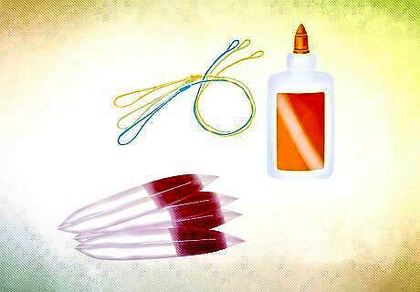Wrap the quills in felt. Cut red felt swatches approximately 1½" (3.8 cm) wide and 4¼" (10.8 cm) long. Wrap each swatch around the leather sheath of each quill, but leave the loop at the bottom uncovered. Tie a loop around the felt at the top and bottom of the quill stem, using strong thread, and apply a drop of glue to the knot to increase durability.