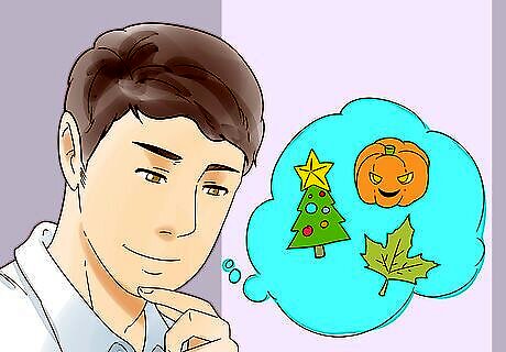 Choose a theme and design your wreath. Start with a holiday or season for your wreath, such as Christmas, spring, Halloween, or fall. Think about the colors, plants, and decorations that go well with that theme. For example: For a Christmas wreath, you may want to use an evergreen wreath for the base, and some Christmas ornaments for the decorations. For a spring-themed wreath, pastel colors and bulb flowers (i.e. tulips and daffodils), would work great. You can make it an Easter wreath by adding colored eggs or bunnies. For a Halloween wreath, get a black evergreen wreath for the base, then decorate it with orange leaves, spiders, and pumpkins. For a fall-themed wreath, a grapevine wreath would make a great base. Decorate it with lots of red, orange, and yellow, as well as pinecones.