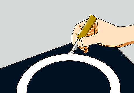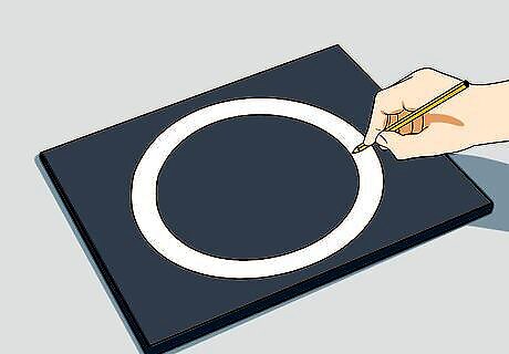 Trace a wreath shape onto a piece of foam board. Purchase a foam board from the craft store or find a piece of thick cardboard. Place a large plate onto the foam board, and trace around it. Lift the plate away, then use a smaller plate to trace a smaller circle inside the bigger one. How wide you made the space between the 2 circles is up to you. The wider the space, the thicker your wreath will be. Use black foam board for dark-colored wreath designs, and white foam board for light-colored wreath designs. Your wreath does not have to be a circle. You can draw a square, heart, or oval instead.