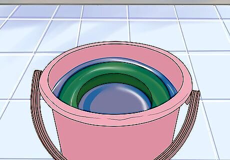 Soak the wreath base in cold water. Find a bucket or sink big enough to fit your wreath into. Fill it with water, then place the wreath into the water. Wait for the wreath to soak up water and sink to the bottom of the container. How long this takes depends on the size of the foam and how porous it is. The wreath is ready when it darkens in color and sinks to the bottom of the sink or bucket.