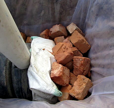 Create a four-inch layer with locally available, eco-friendly, inexpensive, big porous stones. For example, you can use broken bricks.