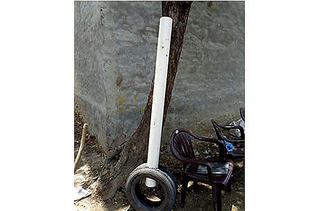 Build the backstand pipe. Collect 15 recycled tires (size 12-13 or with a 2-foot diameter), and make a 4-inch hole in one tire. Cut one piece of pipe to 4 feet 6 inches and insert this pipe into the tire with the hole. No need to use sealant.