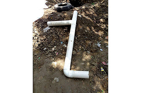Connect one 2-foot-6-inch pipe on one side of the elbow with the sealant. Next, connect the 1-foot pipe on the other side of the elbow with the sealant.
