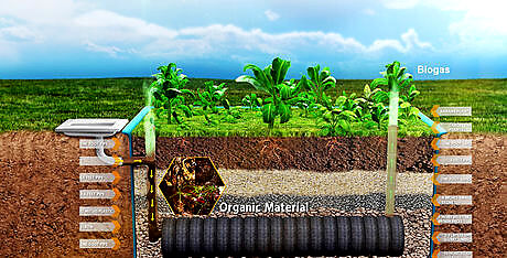 Understand the structure of the toilet. The evapotranspiration toilet has an impermeable, underground tank filled with layers of materials, decreasing in size with each rising, successive layer. Together the substructure layers use the anaerobic digestion, capillary action, evaporation, and transpiration processes to filter, release and absorb the waste matter. Anaerobic digestion converts a portion of the human excreta into biogas, exiting out the pipes. The digested matter travels up and out the tank through capillary action. The nutrients leave the system by incorporating into the plants’ biomass through mineralization and absorption by the plants’ roots, while evapotranspiration removes the liquid, either transpiring through the plants or evaporating at the surface from the soil.