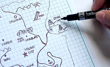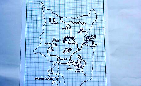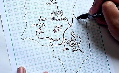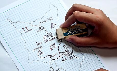 Now that you have natural stuff and towns, add the borders to the nation(s) on your map. Name your nation or nations and draw and name a star (a capital city). In olden times, borders were natural things like lakes or mountains.