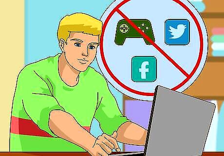 Eliminate distractions when working from an electronic device. The major downside to using flashcards on a computer is the potential for distractions. You have access to the internet, as well as games, pictures, and so on. If you choose to use flashcards on a computer or portable electronic device, take steps to lessen distractions. Disconnect from the Internet, if you're able to use the flashcards without going online. In fact, it may be a good idea to go to a place where you cannot get a WiFi connection. This removes the temptation altogether. If you have to be online to access your flashcards, sign out of all social media accounts like Facebook and Twitter. You should also close any programs running in the background that may be distracting.